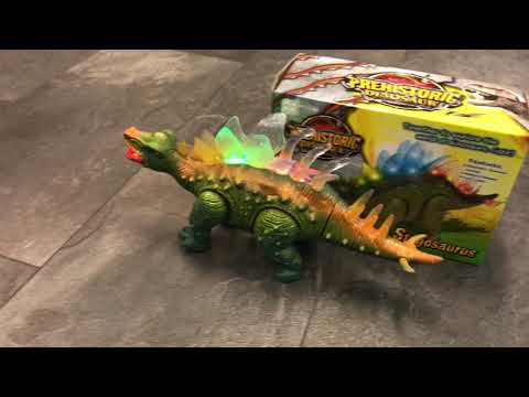 De Stegosaurus is een van de beroemdste Dinosaurussen. Hij leefde volgens de evolutietheorie 155 miljoen tot 140 miljoen jaar geleden. Dat was in het late Jura en het vroege Krijt tijdsperk. Hij werd ongeveer 8 tot en met 13 meter en at planten Deze speelgoed stegosaurs kan net als de echte stegosaurus bewegen en maakt daarbij ook dinosaurus geluiden. De grote bot platen op zijn rug heeft ook kleurrijke Led lichtjes en met zijn beweegbare staart lijkt de Stegosaurus nog realistischer. Specificaties Afmeting product: 35 x 9.5x 16 cm Product gewicht: 300 gram Afmeting verpakking: 27 x 10,5 x 16,5 cm Totaal gewicht incl. verpakking: 366 gram Inclusief batterijen! Bekijk de Stegosaurusin acties in het filmpje hier onder!